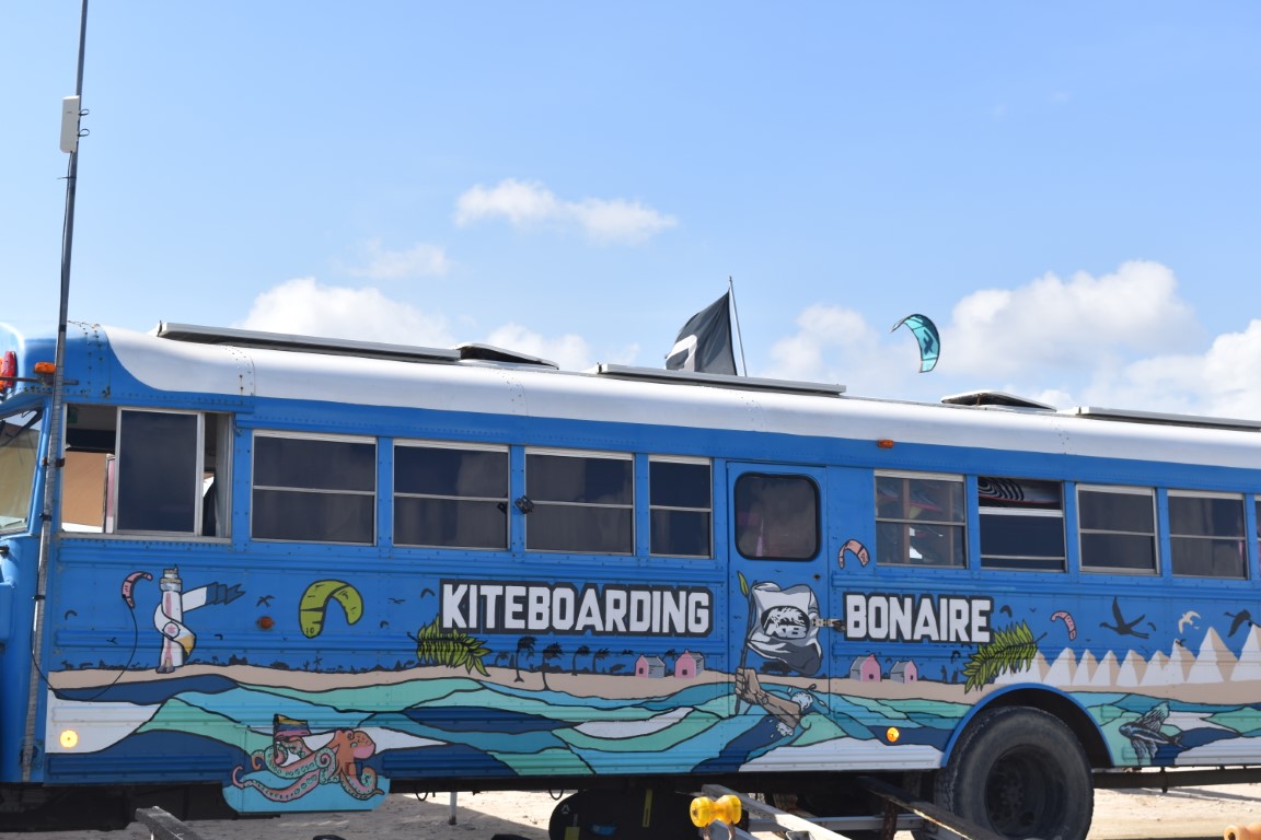 Gelukkig treffen we Marianna en Gorge van SV Taima, onze kiters-buren in Antigua, en kunnen we mogelijks via hen een boei bemachtigen binnenkort. Ze vertellen ons ook over de andere Belgen, uit het noorden, op een catamaran: SV O2 (Orinicotoo). Jonge zestigers uit Vlaanderen die ons direct aan boord uitnodigen en ons verrassen met hun kite ervaring en doorzettingsvermogen. Als echte locals nemen ze ons de volgende dag mee naar de kitespot in Bonaire. Fantastisch, een oma en opa in actie op het water! De terugrit wordt een avontuur op zich als we een lift krijgen in de coole kiteschoolbus en vervolgens achterin een jeep. Binnen enkele dagen verlaat SV O2 Bonaire, maar Luc wil eerst graag leren ‘launchen’ met de kite vanaf hun eigen boot. Zodoende, varen we voor het eerst op een catamaran -Fontaine Pajot- naar Klein Bonaire. Twee andere kiters-boten komen mee party crashen en zo heeft Bert een klas van 4 leerlingen. Kids genieten ondertussen van de Netflix-luxe. Als Bert de volgende dag opnieuw wordt gevraagd voor eenzelfde les op een andere boot, hebben we misschien een gat in de markt gevonden.